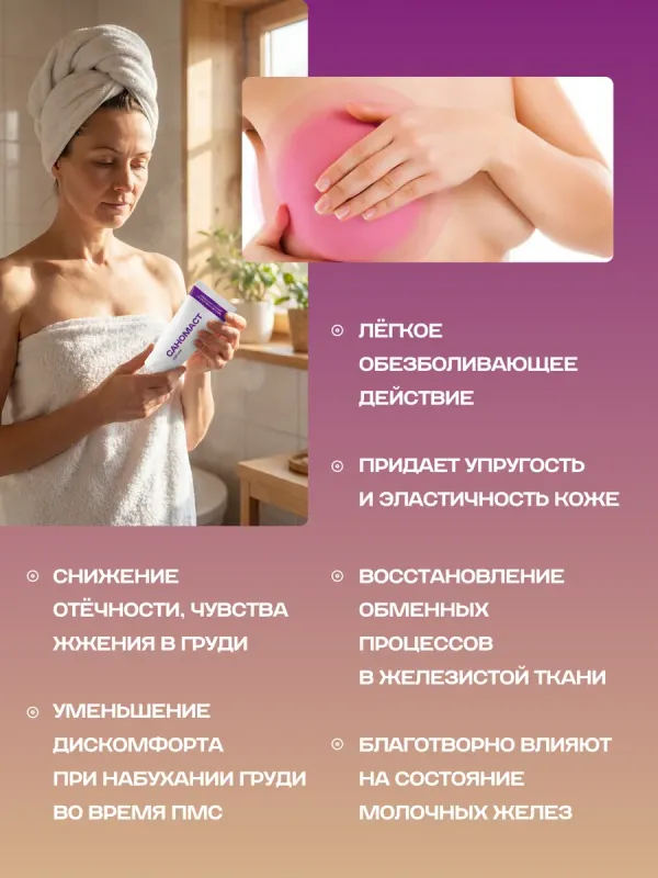 САНОМАСТ создаёт ощущение комфорта и заботы о коже груди, помогая поддерживать её здоровый вид и упругость.