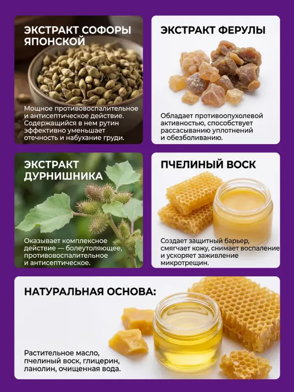 САНОМАСТ — косметический крем‑гель на растительной основе для ухода за кожей молочных желез. Формула с экстрактами софоры, ферулы и дурнишника, пчелиным воском и ланолином помогает снизить дискомфорт, уменьшить локальную отёчность и поддержать упругость кожи при регулярном курсовом применении.